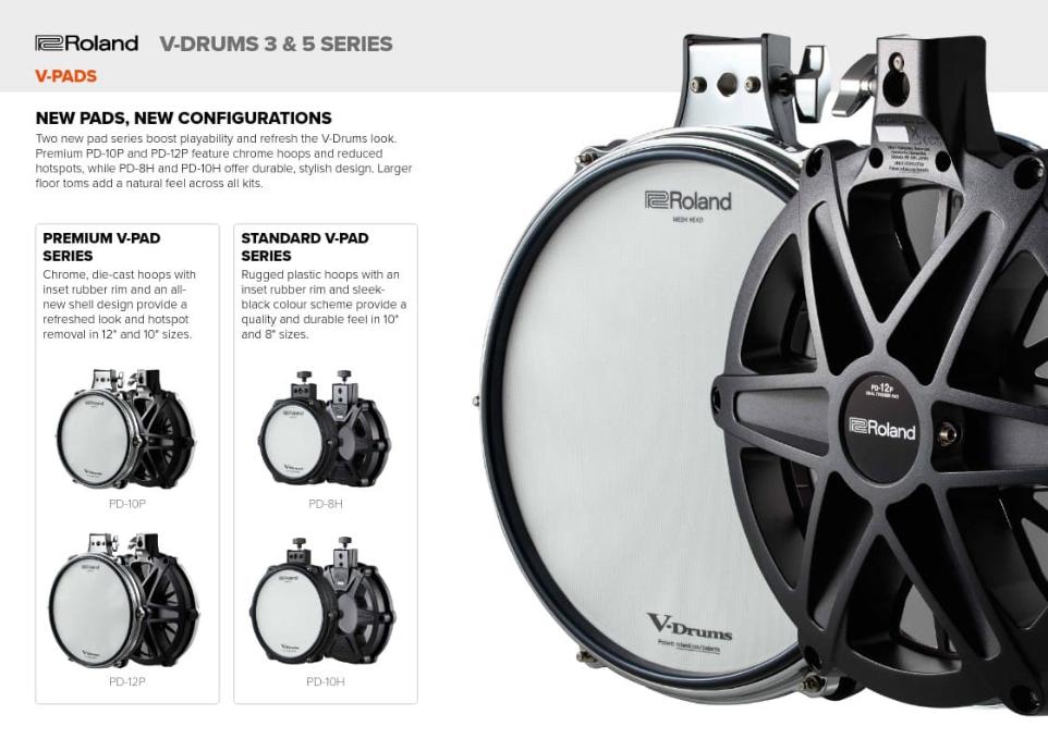 Os PD-10P e PD-12P têm aros cromados e menos hotspots, enquanto os PD-8H e PD-10H oferecem durabilidade e design elegante. Os timbalões maiores tornam a sensação de toque mais natural.