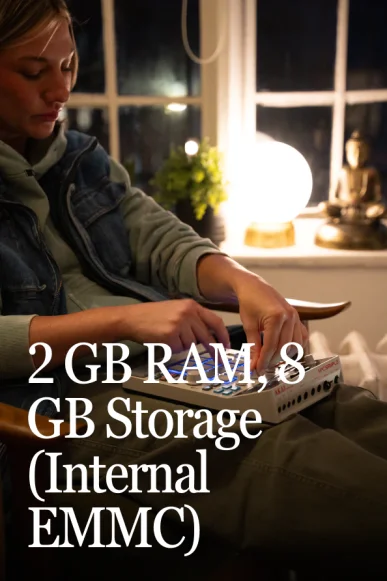 2 GB de RAM com 8 GB de armazenamento interno.