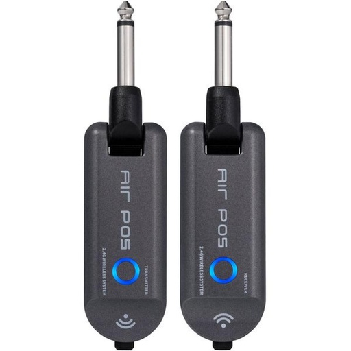 Sistema Sem Fio Mooer AIR P05. Transmissor e Receptor com jack de 6,35 mm rotativo.